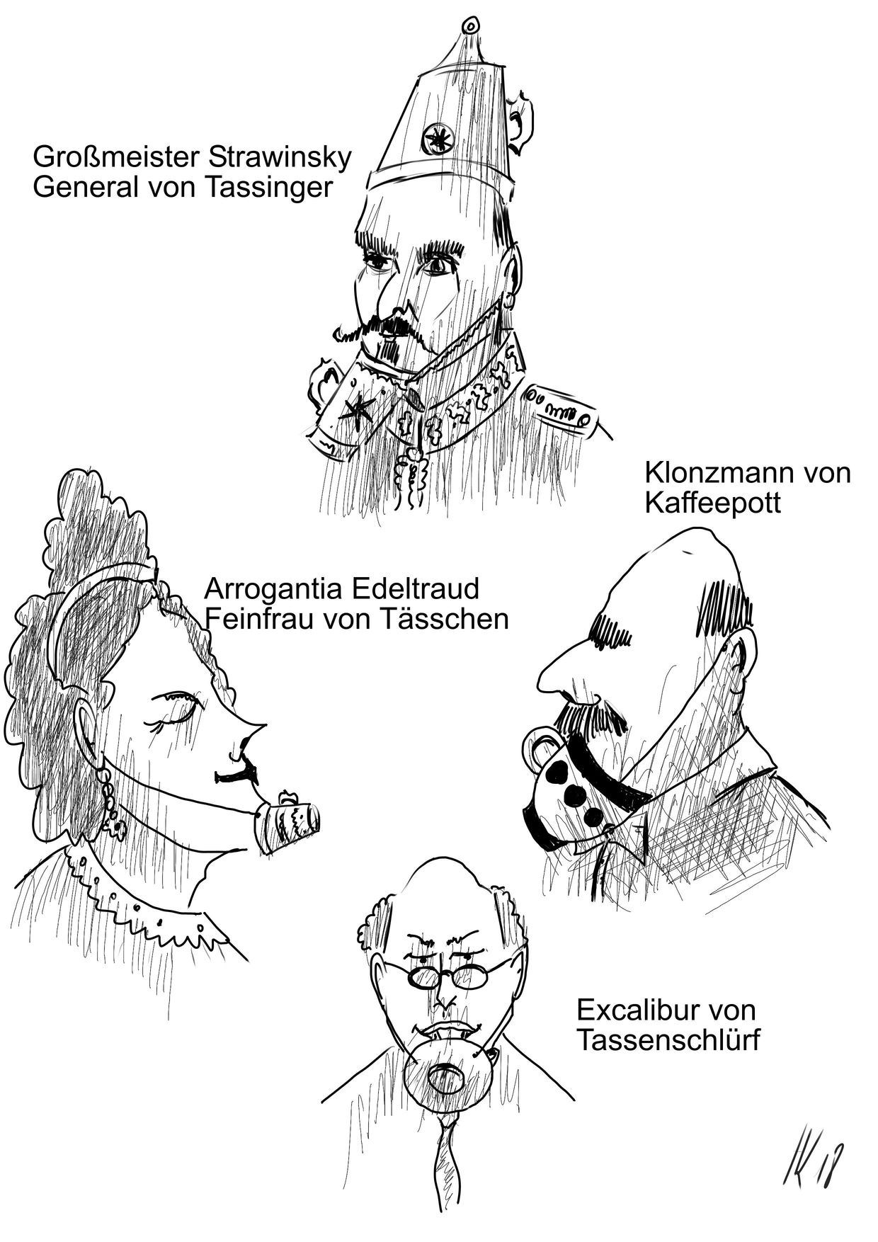 Außerdem tragen alle Mitglieder in ihrem Nachnamen ein "von" gekoppelt mit einem Tassenbezug, das ist ihr "geheimer" Ordensname.