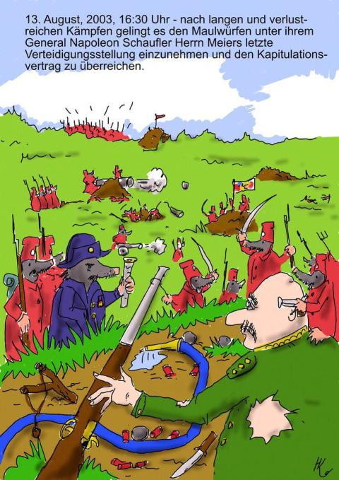 Nun gab es da diesen einen Tag, als die Maulwürfe sich zusammen schlossen und unter Führung ihres ruhmreichen Generals, unter schweren Verlusten, einen vortrefflichen Sieg erkämpften.