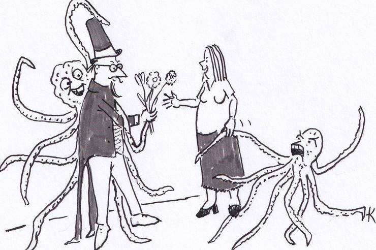 Zum "Gekrakel" wird diese Strichelei allerdings erst durch die beiden Kraken!