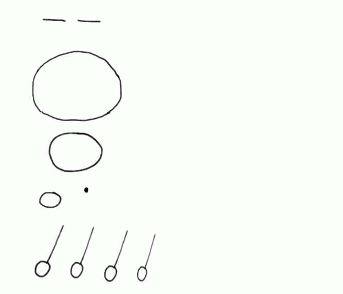 Die Frage ist natürlich, wie weit kann man bei der Darstellung einer Figur (oder eines Gegenstandes) die Anzahl der Linien (Striche) reduzieren. Wo liegt die Untergrenze der Wahrnehmbarkeit - wie viele und welche typischen Linien sind dazu notwendig? Das Ergebnis solcher zeichnerischen Überlegungen könnte in etwa so aussehen ...